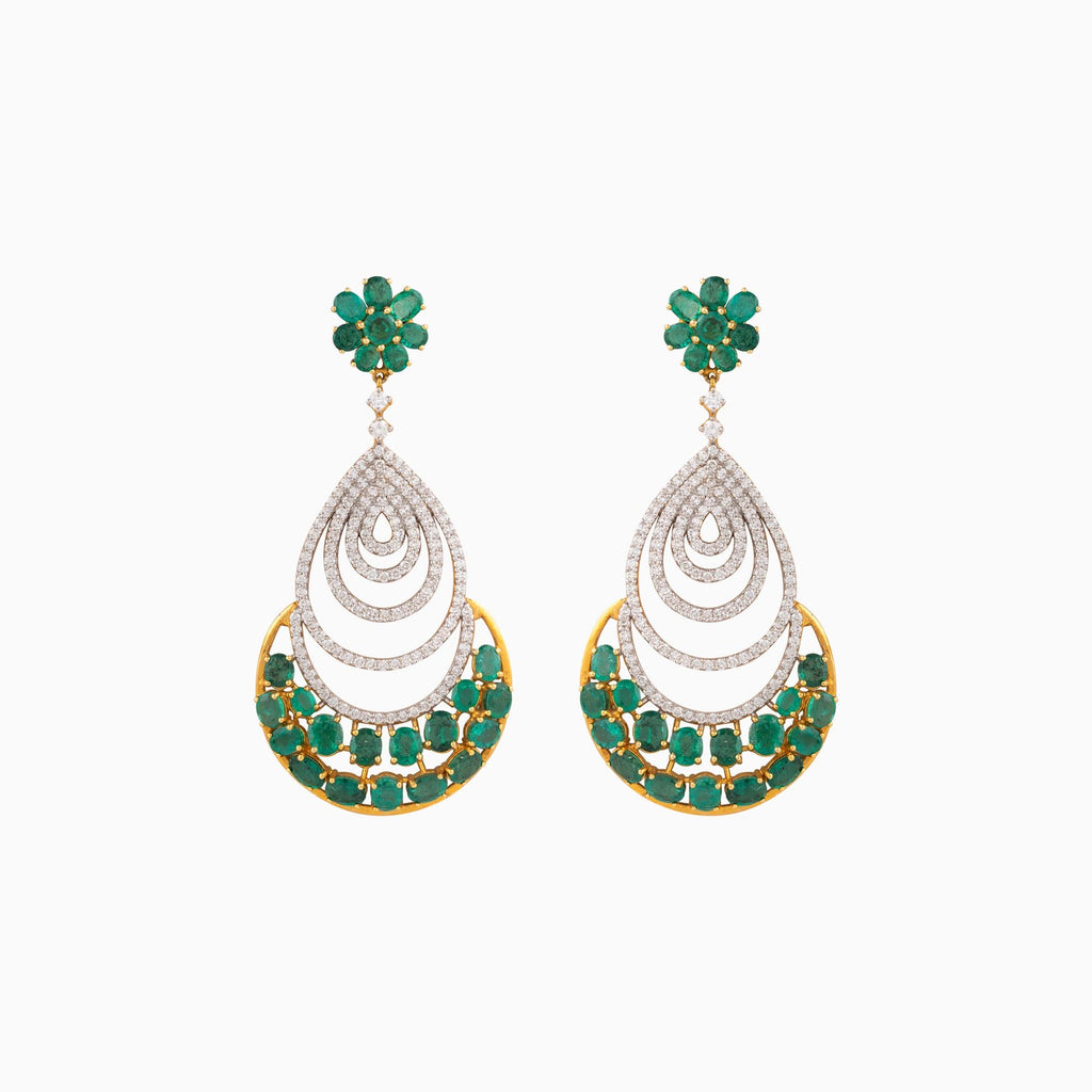 Earring Pair with Round Cut Diamond and Oval Cut Emerald - WDN597