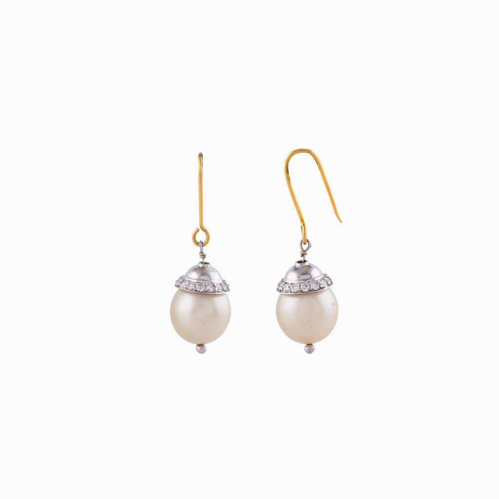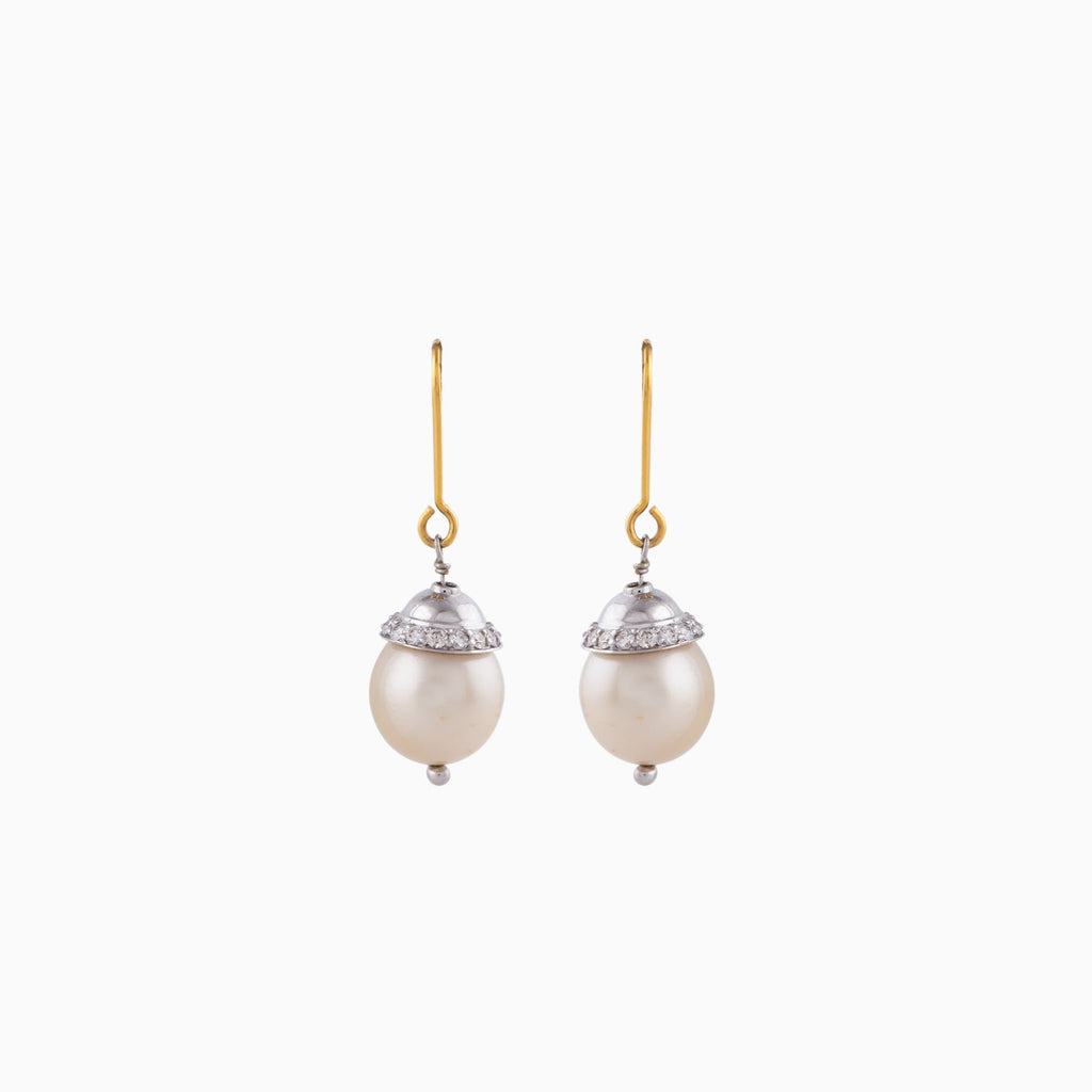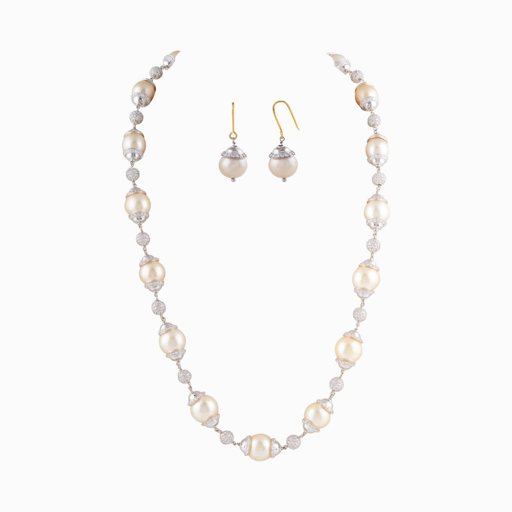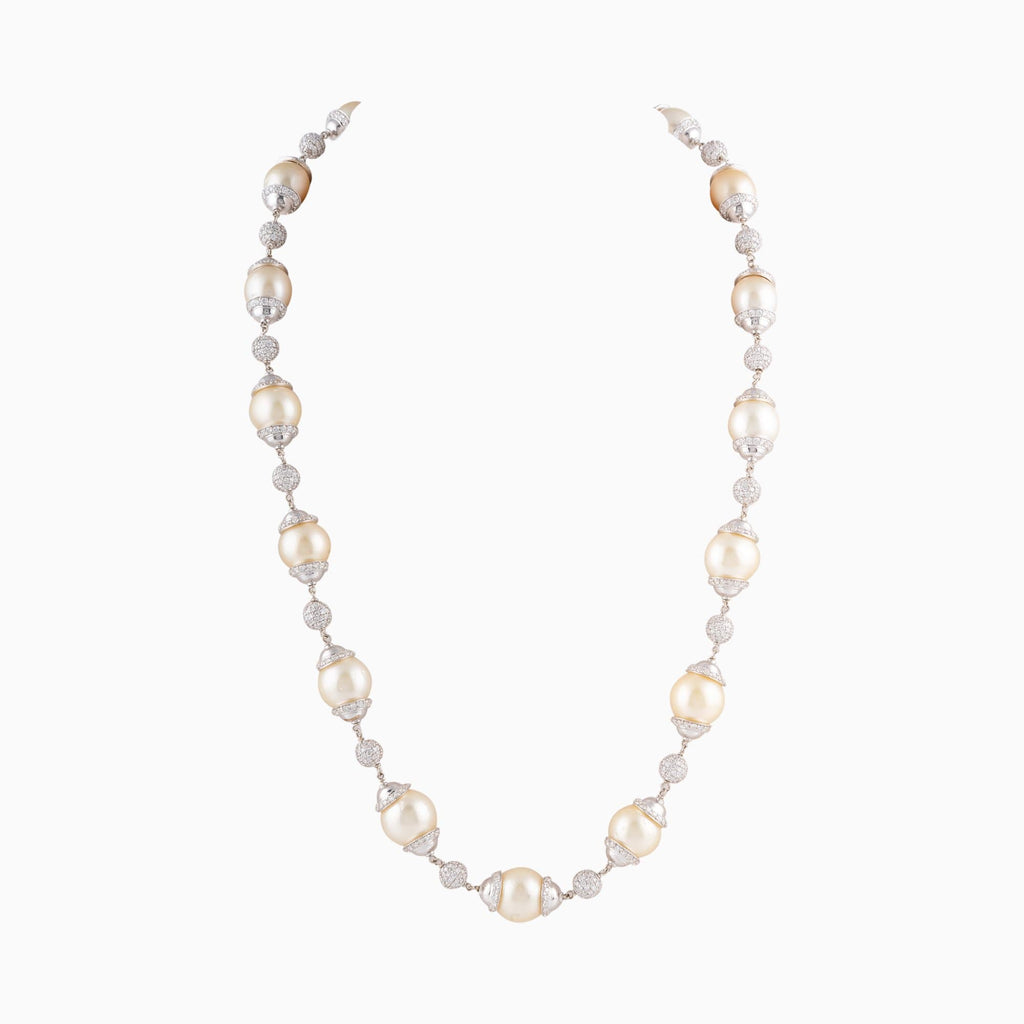 Necklace with Round Cut Diamond and S.S. Pearls with Gold Links-WDN063