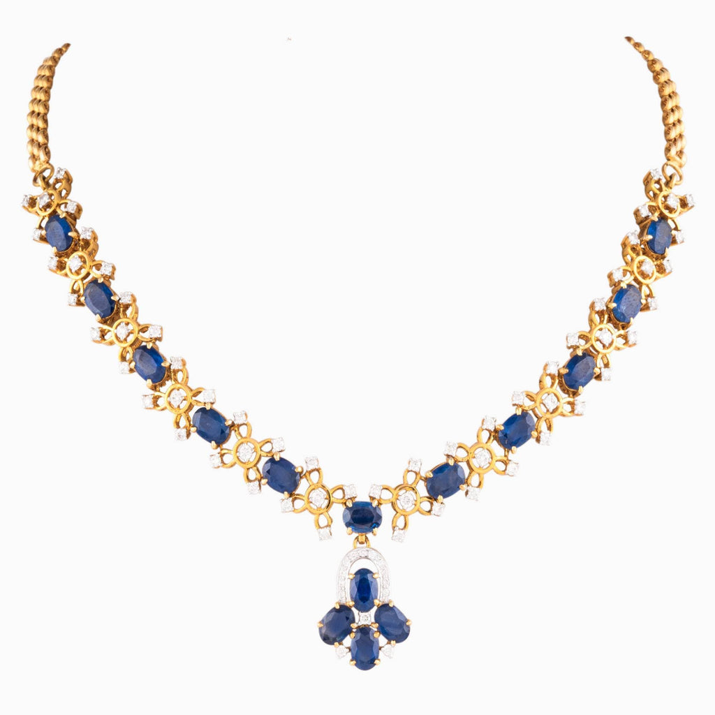 Necklace with Round Cut Diamond and Oval Cut Blue Sapphire -WDN865