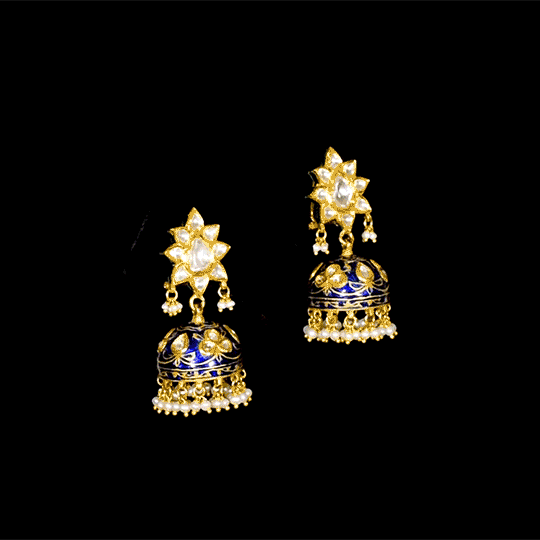 The Blue Meena Big Pankhi Pendant and jhoomki pair is a stunning piece of jewelry that will add a touch of elegance and sophistication to any outfit. The pendant is crafted with intricate detailing and features a beautiful blue Meena work.
