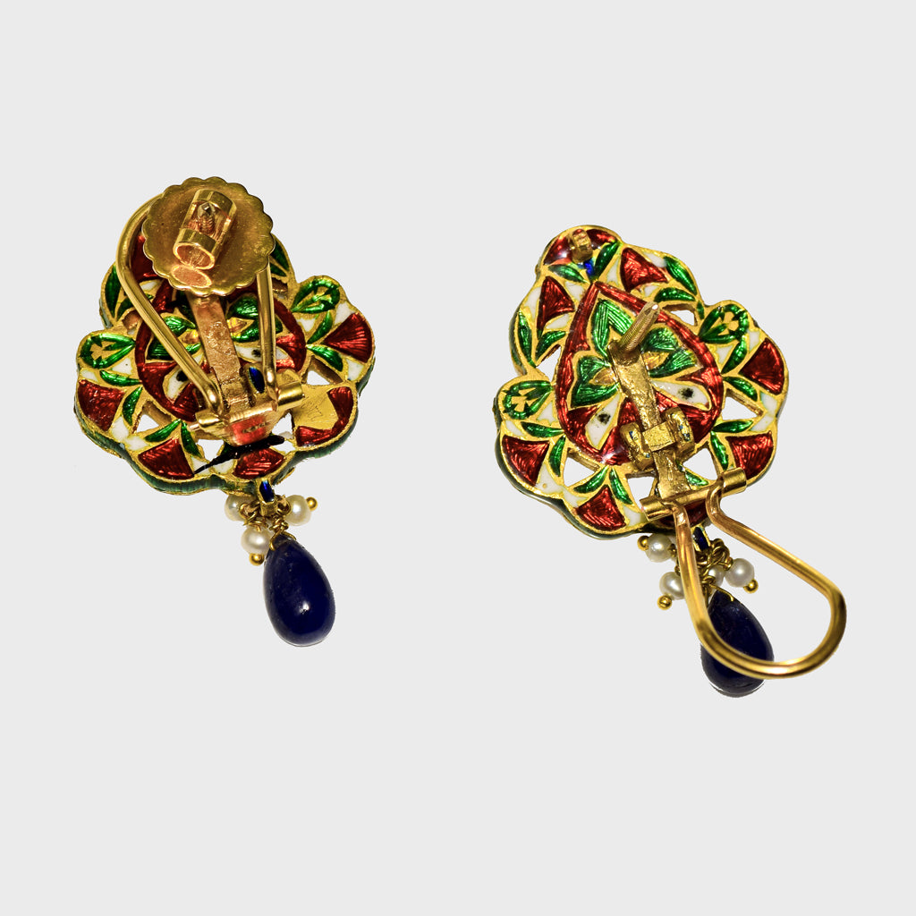 Blue Meena Tops, adorned with uncut diamonds and accented by sapphire drops. (KME2055)