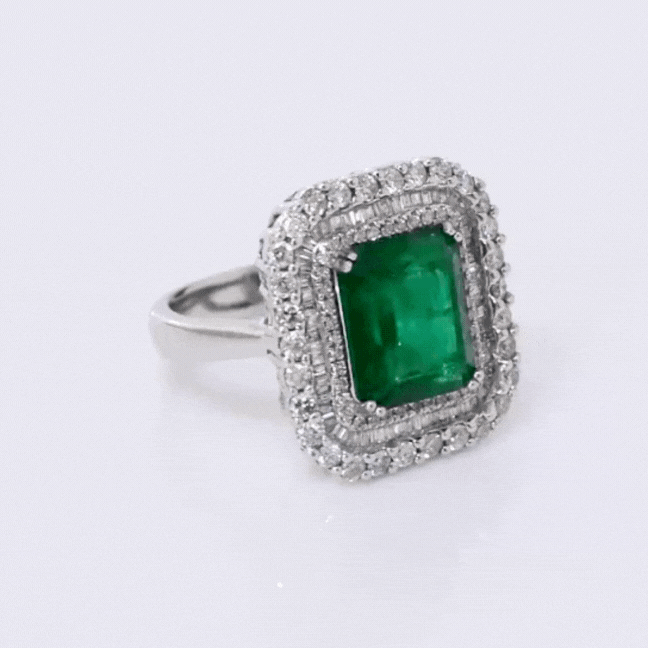 Ring, a dazzling fusion of timeless elegance and natural allure, featuring a captivating Colombian Emerald embraced by sparkling diamonds.(PGDR063)