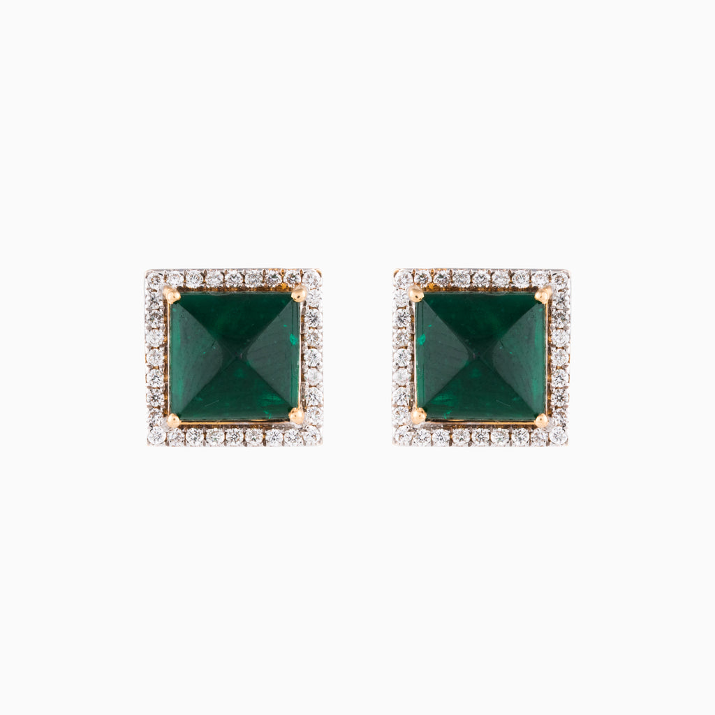 Earring Pair with Round Cut Diamond and Emerald-PGDE0224