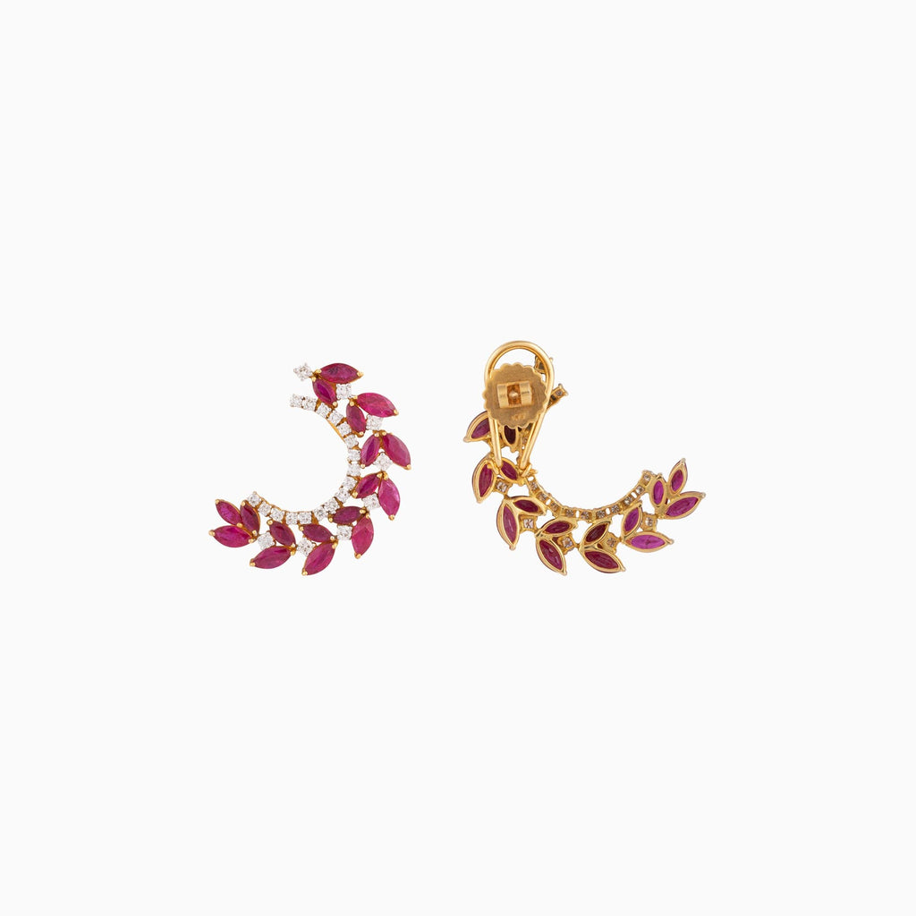 Earring Pair with Marquise Cut Ruby and Round Cut Diamond - WDN536