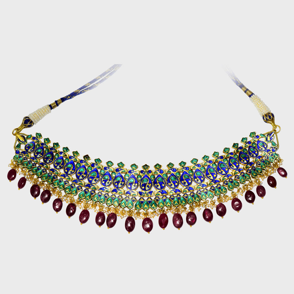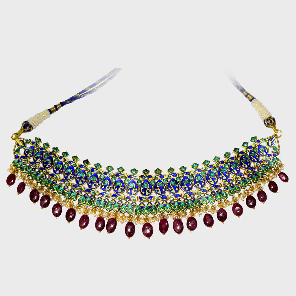 Meticulously crafted with uncut diamonds and graceful ruby hangings. The necklace gently encircles the neck, offering a touch of elegance with its refined design. Each piece showcases the natural allure of uncut diamonds, complemented by the rich hue of rubies that sway delicately. Perfect for those who appreciate understated luxury, this set effortlessly enhances any attire